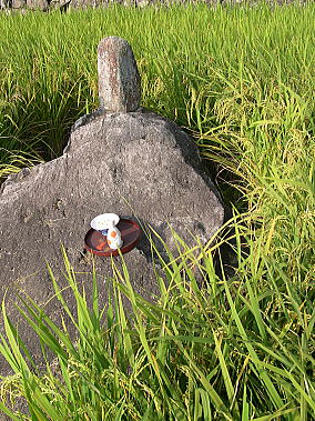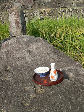朝、田の神様にお供えがされました 神聖な朝を迎えた今日の坂折棚田