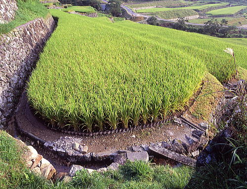 サミット当日坂折棚田の稲です。今年は真夏に天候不順で気温も上がらず 冷夏となりましたが、このところの残暑でなんとか持ち応えました。 それでも実をつけていない稲も沢山あり、例年よりは収穫も減るでしょう。