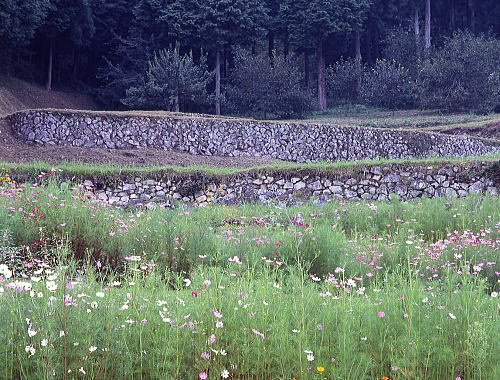 耕作放棄さた棚田もありますが、コスモスを咲かせたり転作などで保存されている田畑も